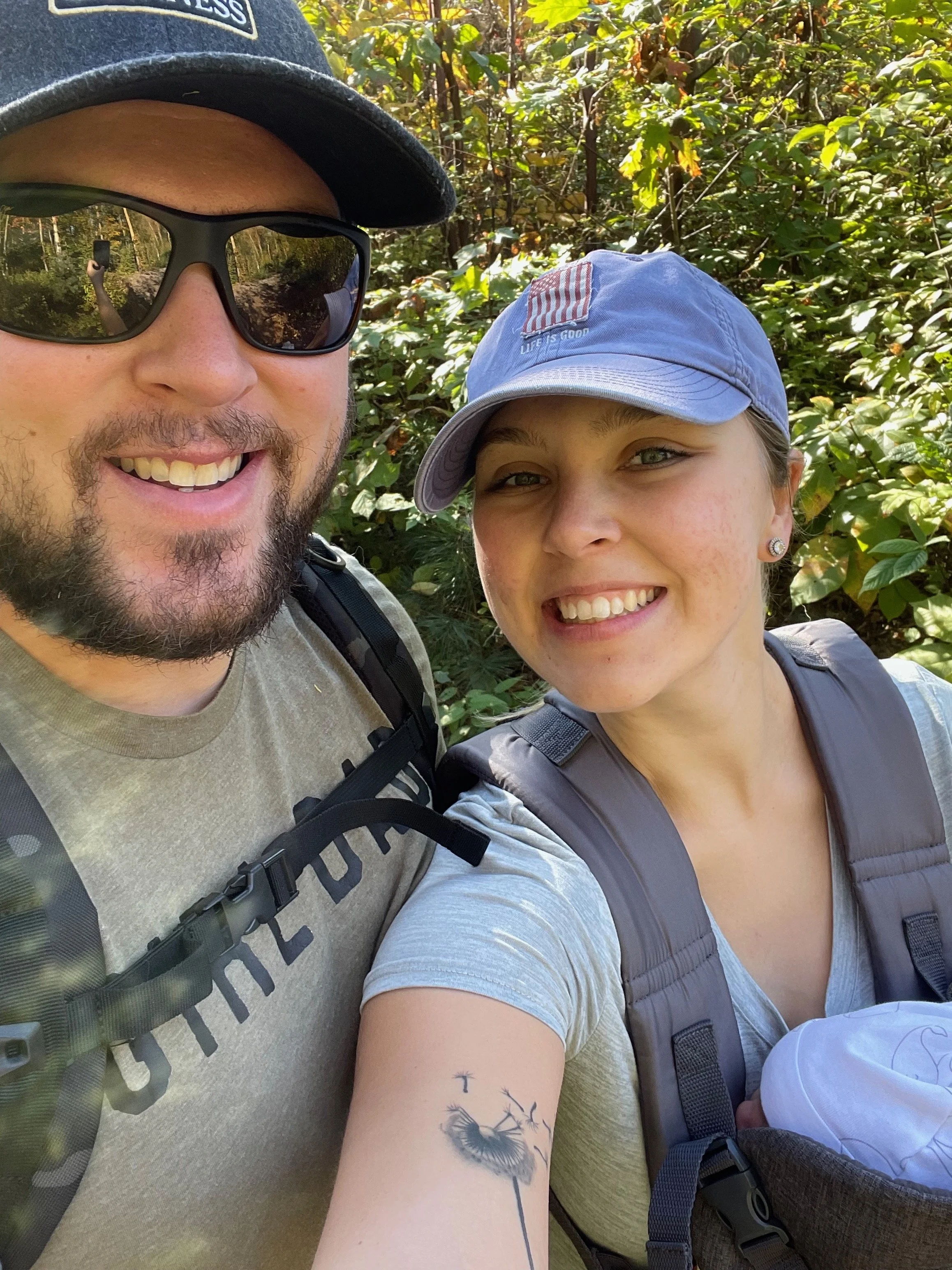 My husband donning his Tactical Baby Gear Diaper Bag and Grunt Style “Girl Dad” t-shirt on our first family hike!