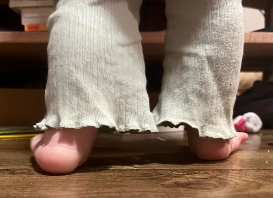 Example: A toddler who walks on their toes due to tight calf muscles